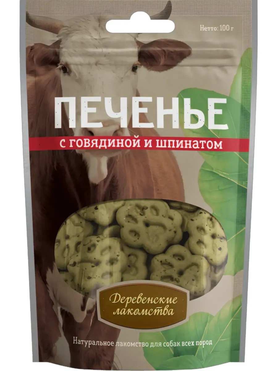 Деревенские лакомства Печенье с Говядиной и Шпинатом для Собак 100г 1 шт