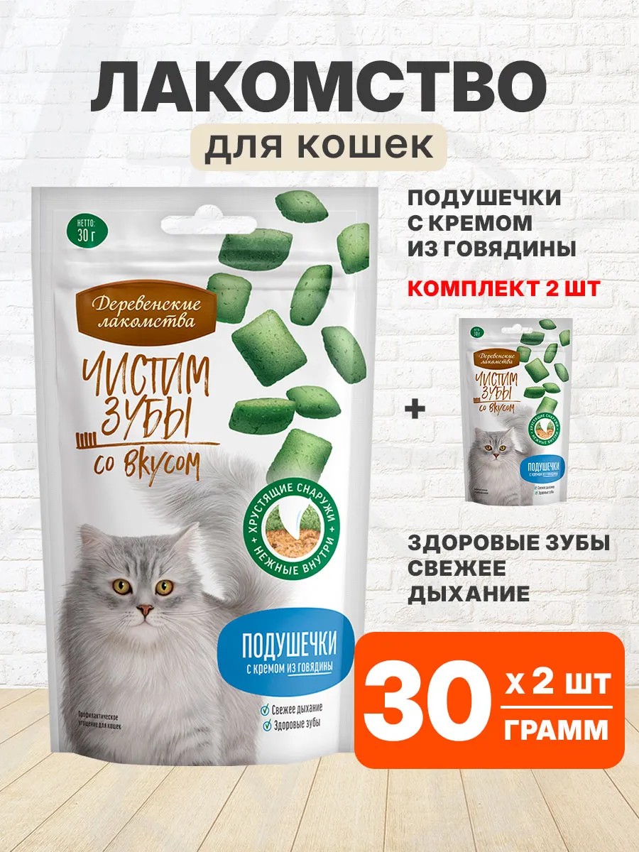 Деревенские лакомства Лакомство подушечки с кремом из говядины для кошек 30г 2 шт