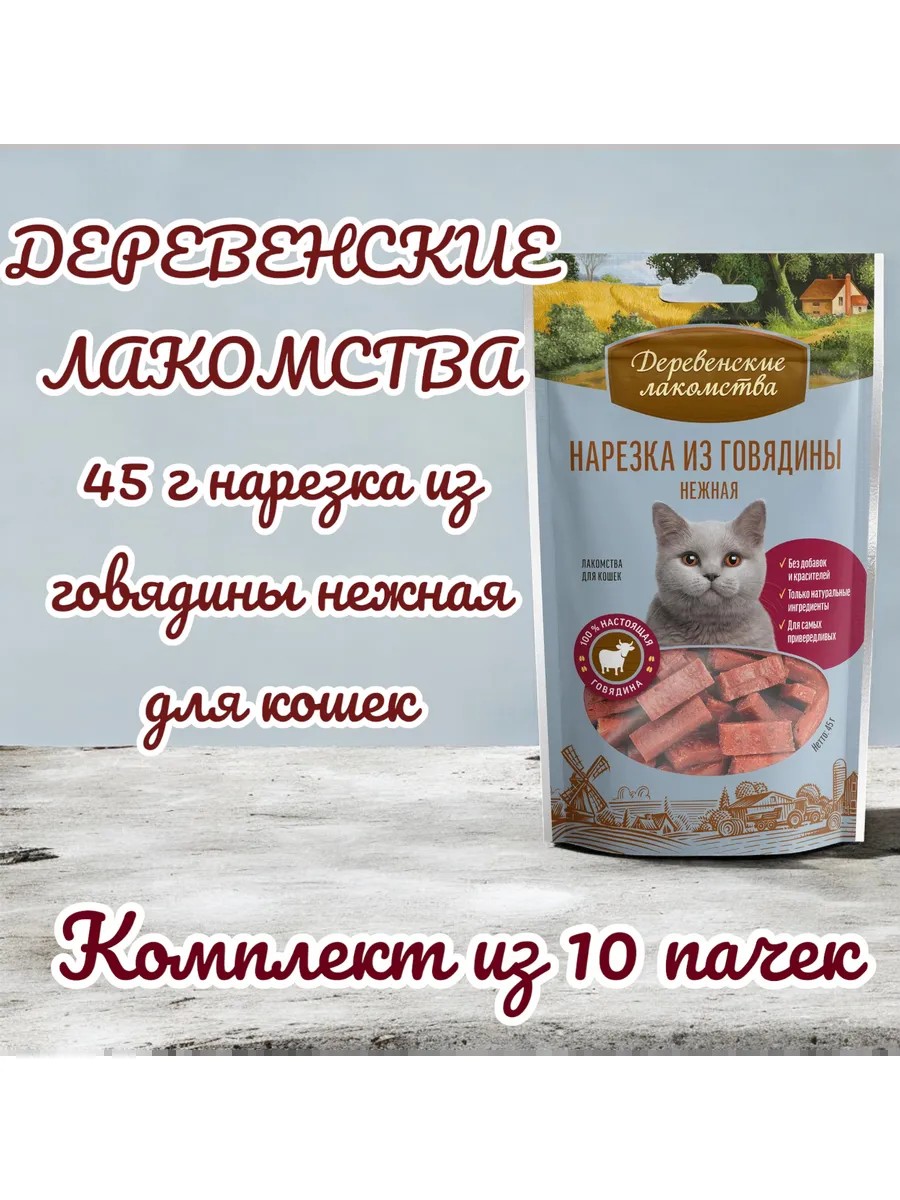 Деревенские лакомства Нарезка из говядины нежная для кошек 45 г, 10 пачек