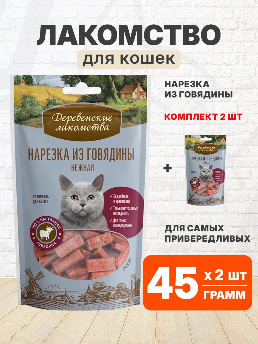 Деревенские лакомства Лакомство Нарезка из говядины нежная для кошек 45 г 2 шт