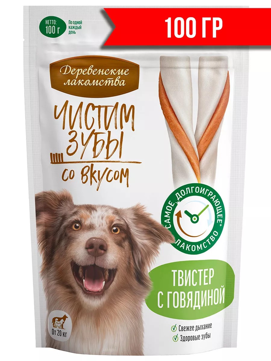 Деревенские лакомства Лакомства для собак крупных пород твистер с говядиной 100 гр