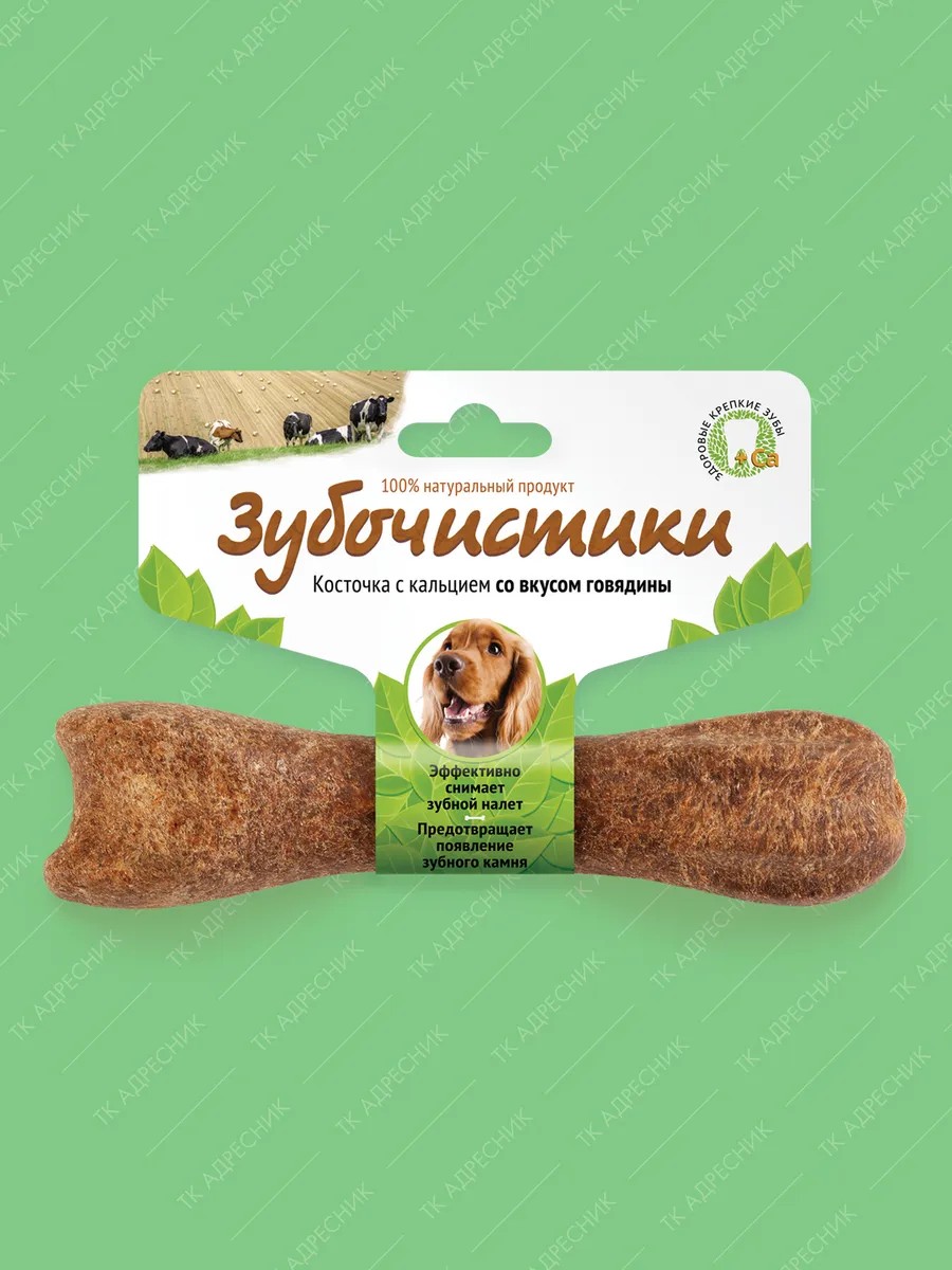 Богатая кальцием жевательная косточка, которая не только эффективно удаляет зубной налет и чистит зубы, но и является любимым угощением у собак. Идеальна для поддержания крепких и здоровых зубов.Зубочистики - это лучшие лакомства для чистки зубов на основе пресованной сыромятной кожи, отлично снимают зубной налет, предотвращают появление зубного камня и борятся с болезнями десен. Запантетованная структура делает косточку достаточно жесткой, что обеспечивает максимально эффективную чистку зубов, сопоставимую с механической.Существенное содержание кальция укрепляет кости и зубы собаки. 100% натуральный состав и отсутствие любых искусственных ингридиентов способствует легкому усваиванию. Рекомендации по употреблению: Количество лакомств в рационе питомца не должно превышать 10 % от общего объема потребляемой пищи. Следите, чтобы у животного всегда была в миске вода. Состав: сыромятная говяжья кожа, овощной крахмал, соевый лецитин, кальций, экстракт мяса говядины, сорбат калия.