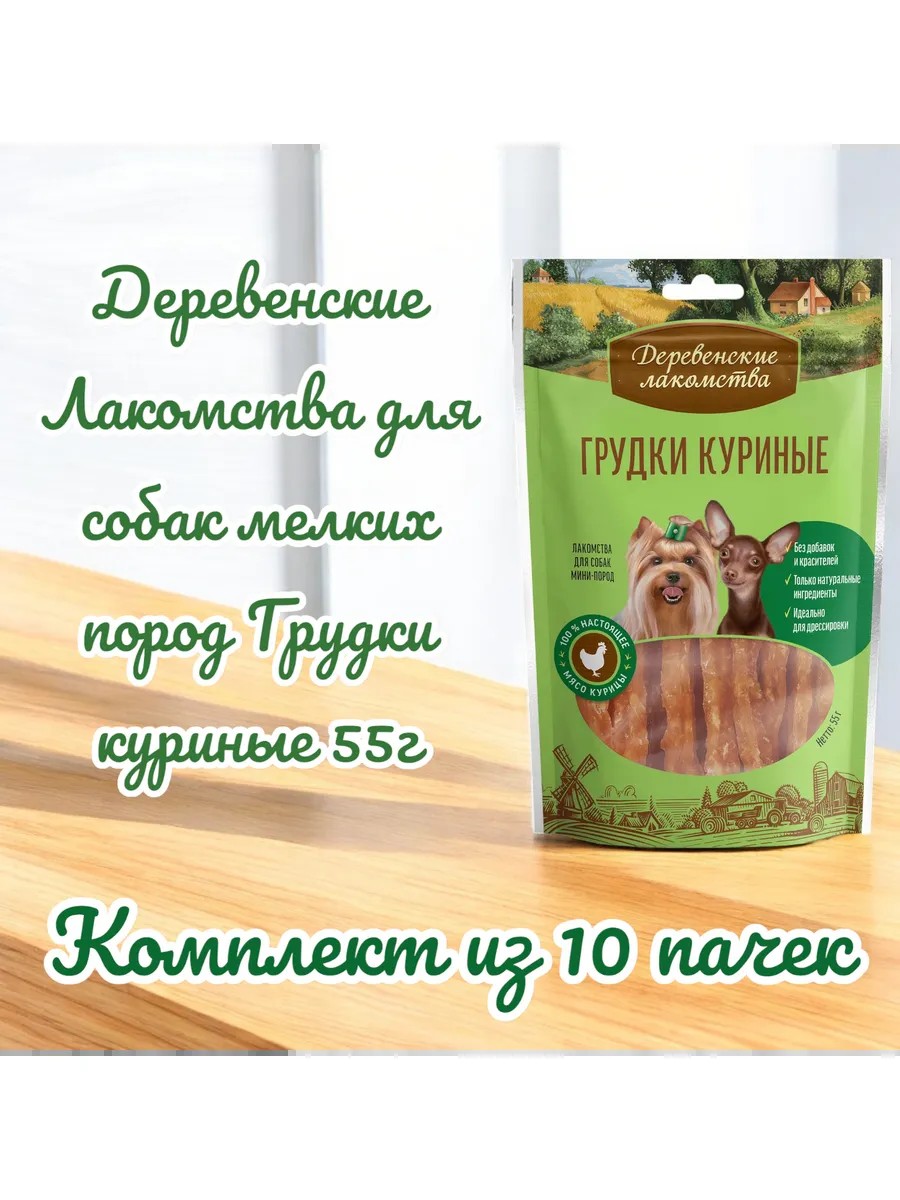 Деревенские лакомства Лакомство Грудки куриные для собак мини-пород, 55г, 10 пачек