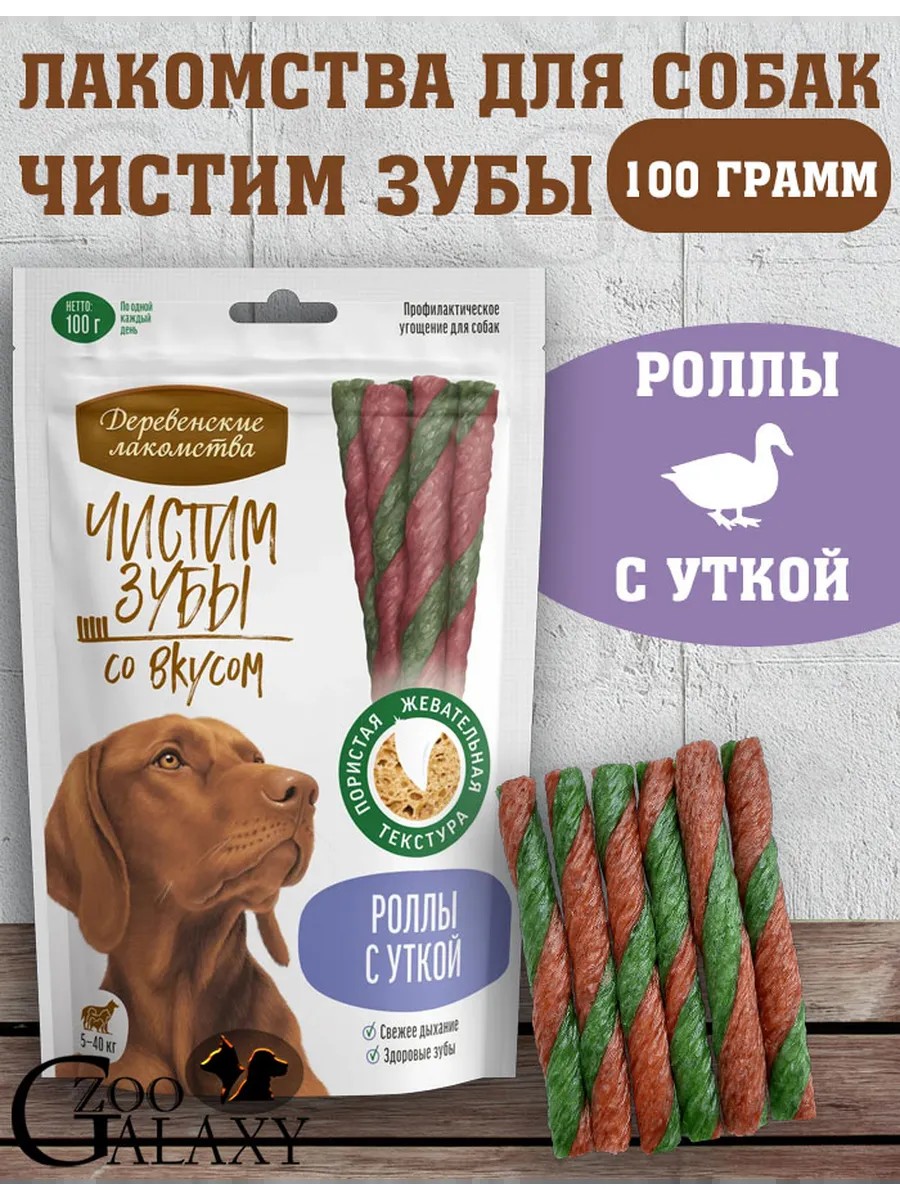 Деревенские лакомства Чистим зубы для собак от 5 кг-40 кг роллы с уткой 100г