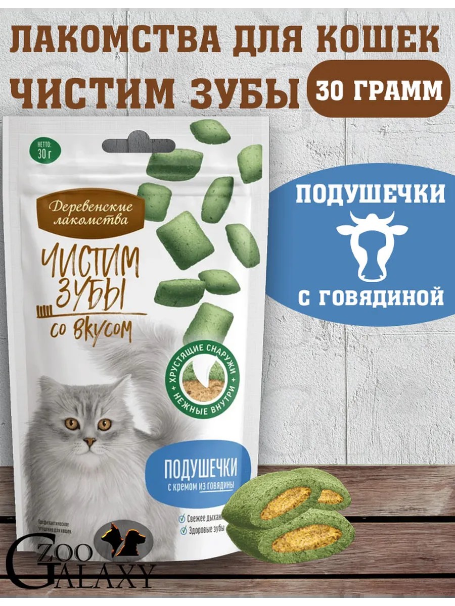 Деревенские лакомства Чистим зубы подушечки для кошек с кремом из говядины 30г