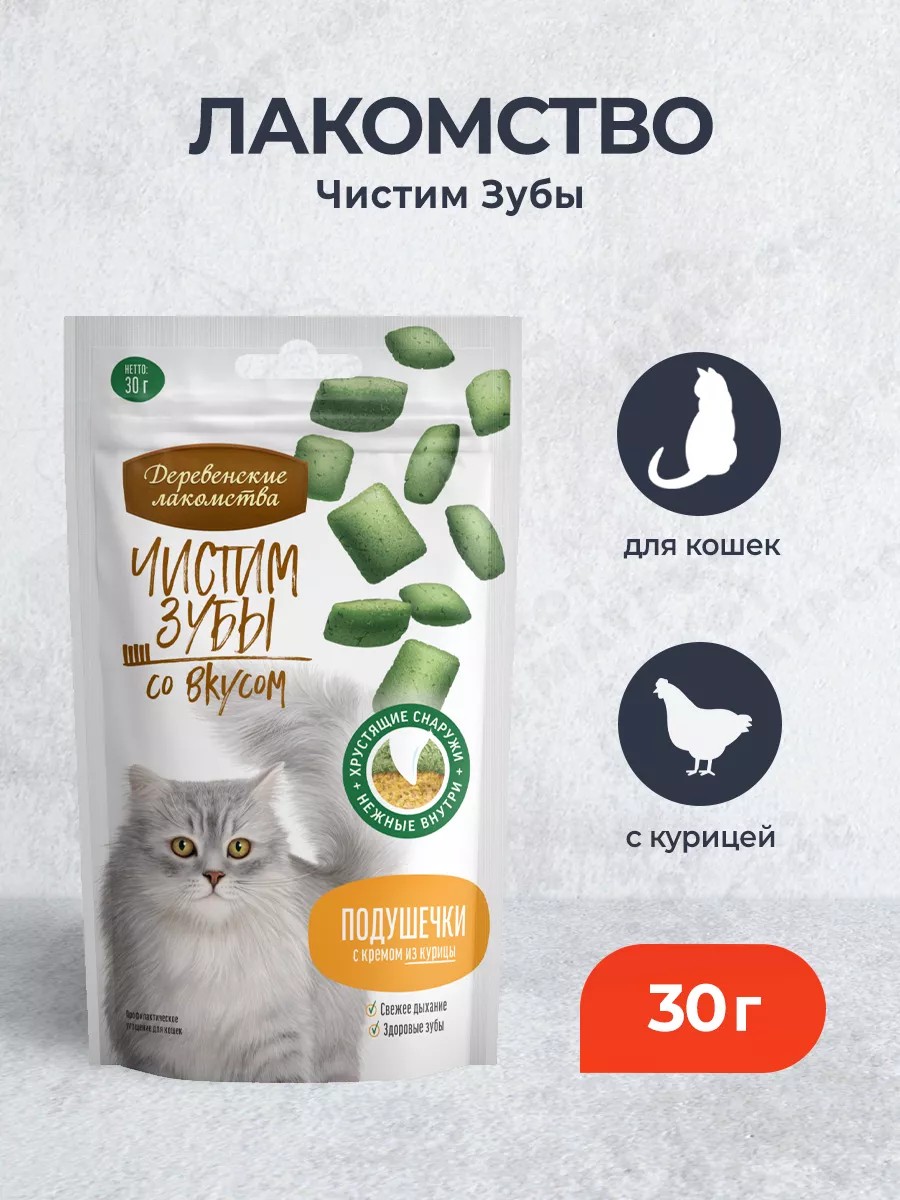 Деревенские лакомства Чистим зубы подушечки для кошек с кремом из курицы - 30 г
