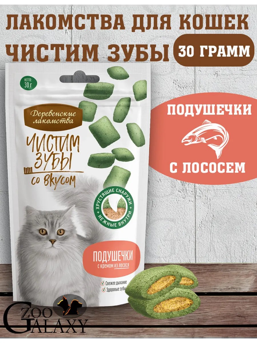 Деревенские лакомства Чистим зубы подушечки для кошек с кремом из лосося 30г