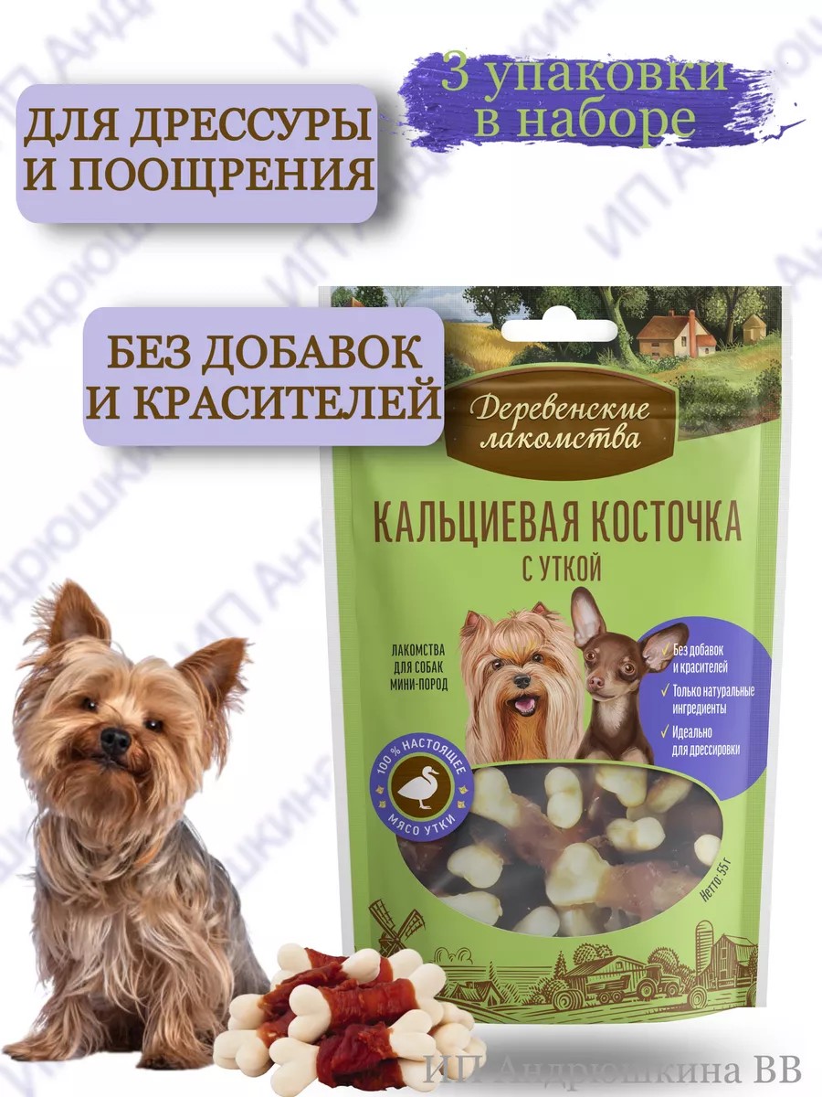 Деревенские лакомства Лакомство Кальциевая косточка с уткой 3 уп