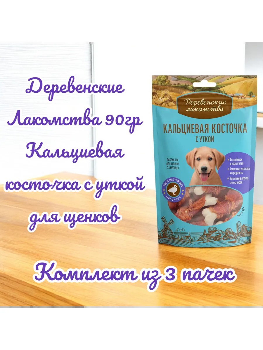 Деревенские лакомства Лакомство Кальциевая косточка с уткой д/щенков 90г, 3пачки