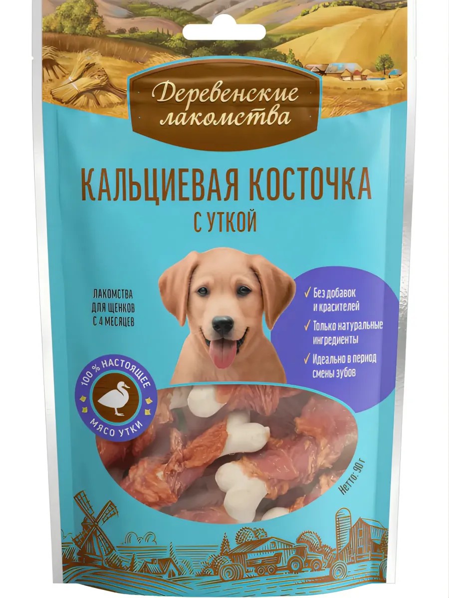 Деревенские лакомства Кальциевая Косточка с Уткой Лакомство для Щенков 90г