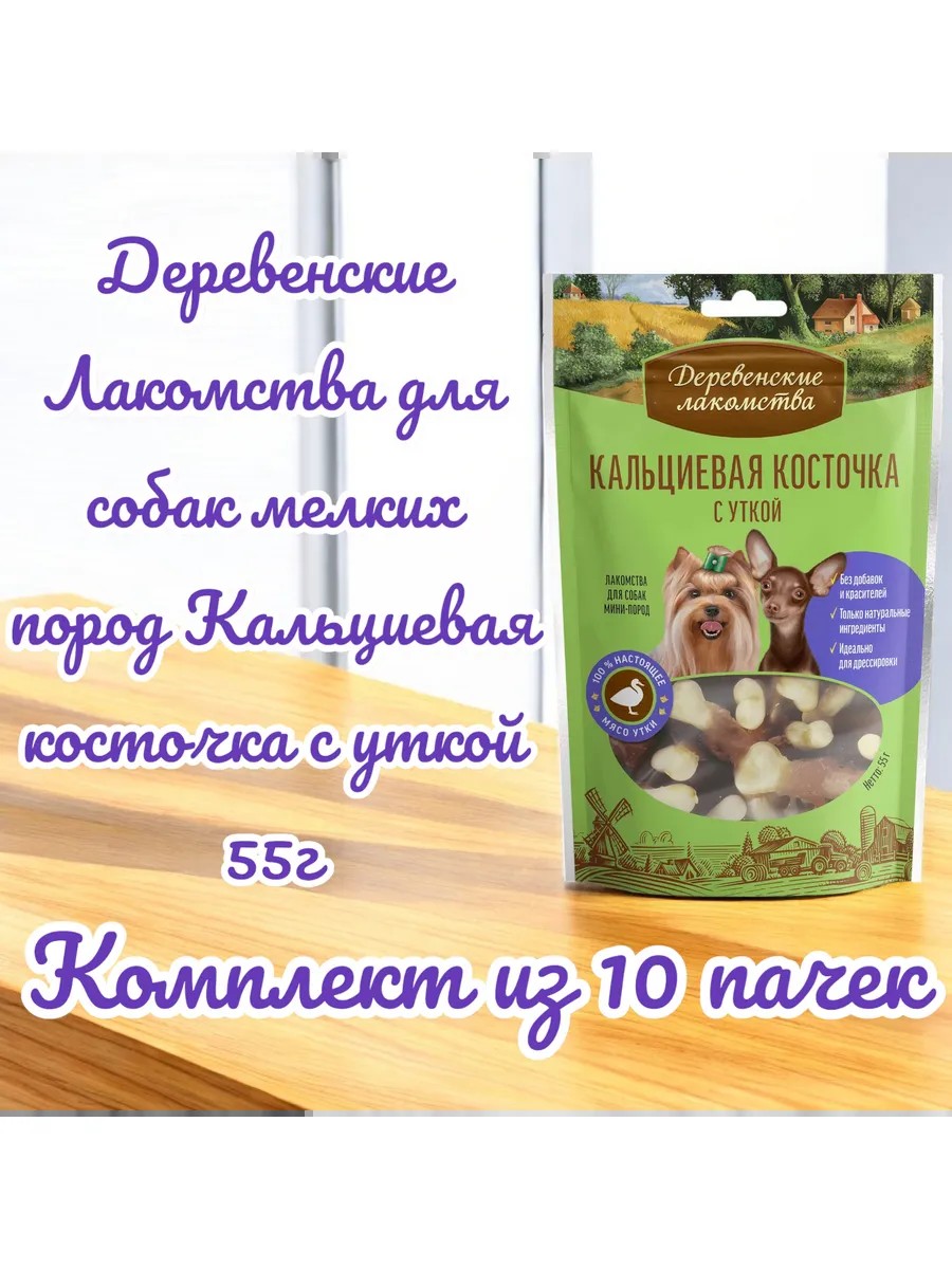 Деревенские лакомства Кальциевая косточка с уткой для собак 55г, 10 пачек
