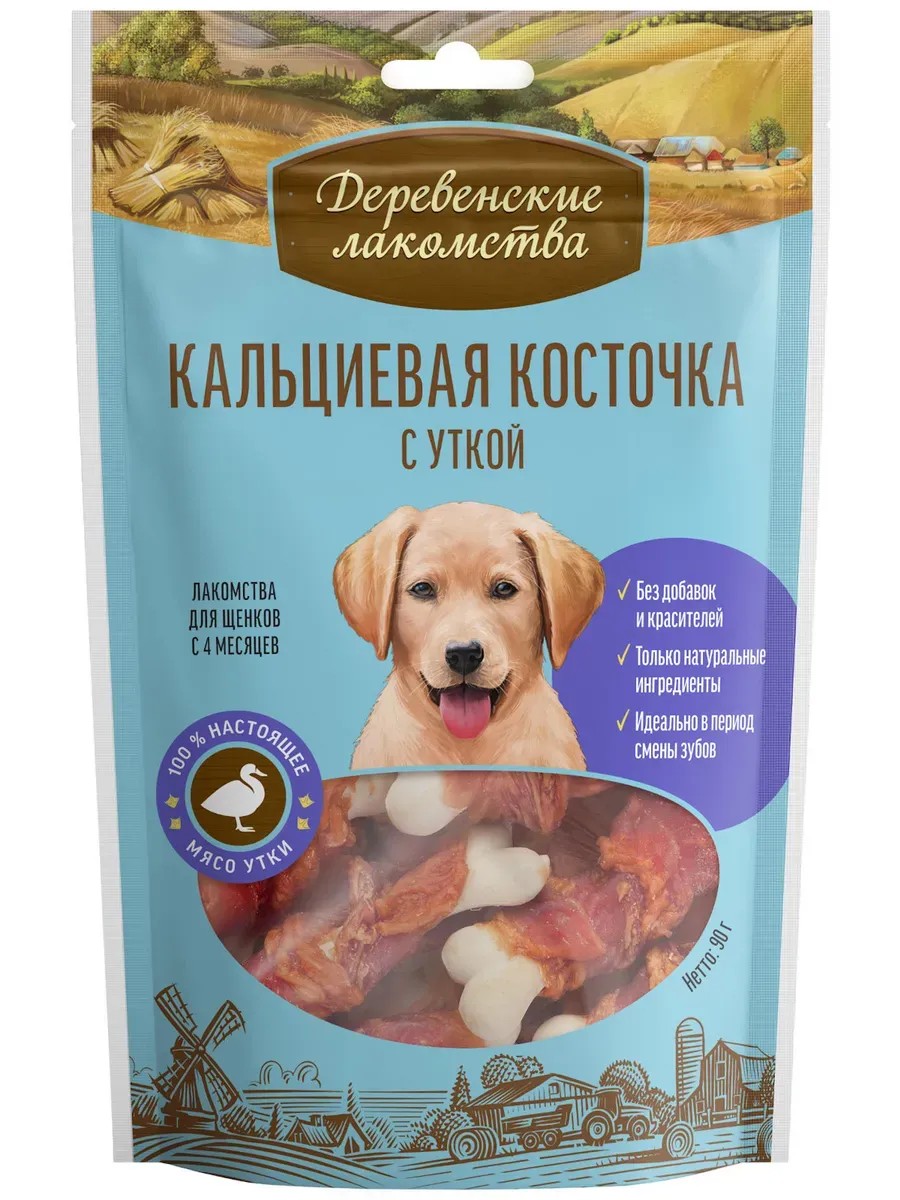 Деревенские лакомства Кальциевая косточка с уткой д/щенков 90г