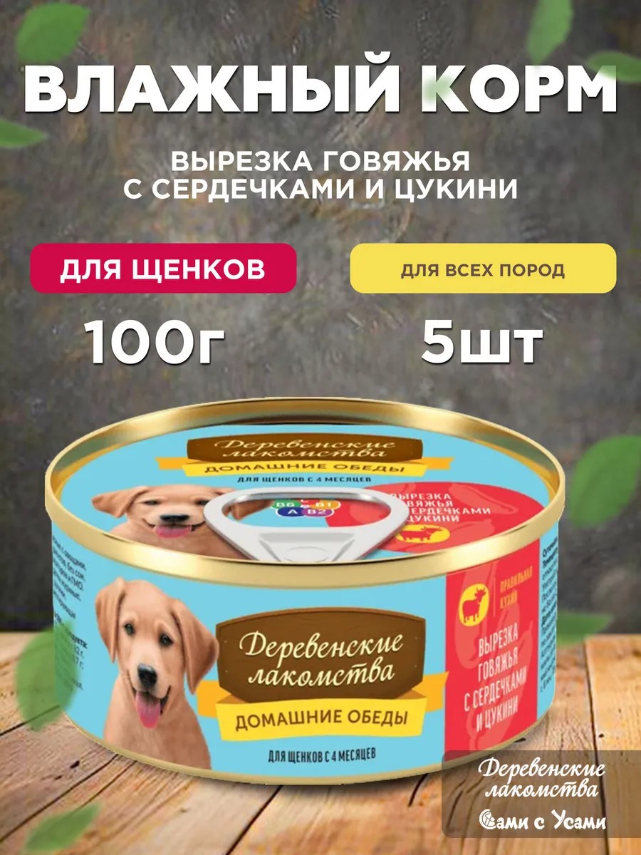 Представляем вашему вниманию влажный корм «Деревенские лакомства» для щенков старше 4 месяцев. Этот продукт предназначен для обеспечения полноценного питания вашего любимца. Он содержит высококачественные ингредиенты, включая нежную говядину и аппетитные сердечки, которые обеспечат щенка необходимыми белками и полезными веществами. Добавление цукини придаёт корма особую полезность благодаря высокому содержанию витаминов и минералов.br/br/Существенным преимуществом данного корма является его сбалансированный состав, который отвечает всем потребностям растущего организма и способствует поддержанию здоровья и активности вашего щенка.br/br/Влажный корм «Деревенские лакомства» легко усваивается и обладает ярким вкусом, что делает его идеальным выбором даже для самых привередливых домашних животных. Использование натуральных ингредиентов делает этот продукт безопасным и полезным для ежедневного питания. Вы можете быть уверены, что ваш питомец получает только лучшее.