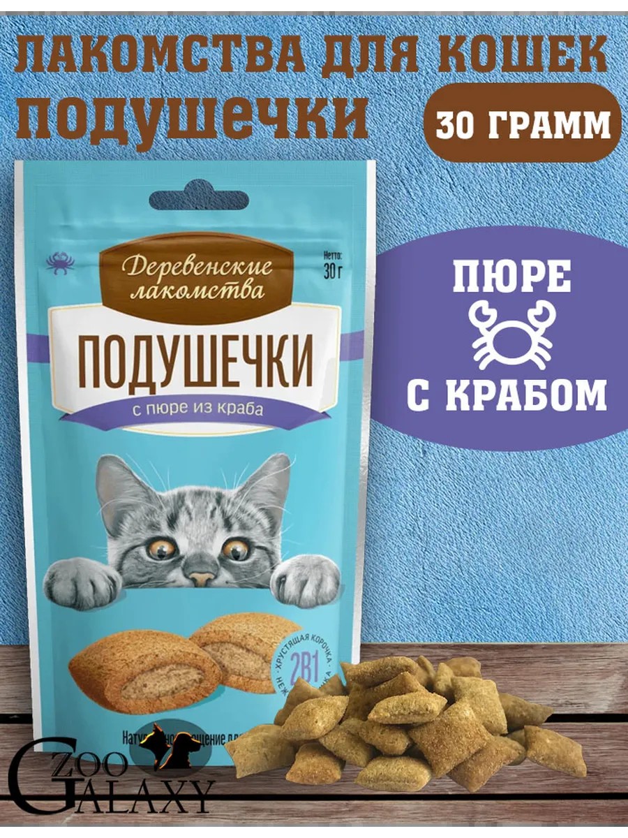 Деревенские лакомства Лакомство для кошек подушечки с пюре из краба 30г