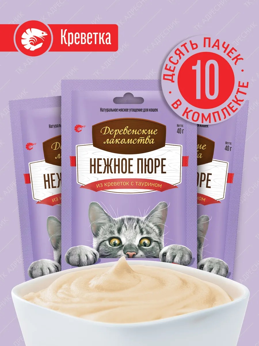 | Комплектация | Лакомство для кошек "Деревенские лакомства" Нежное пюре из креветки 40 гр.*10 штук |