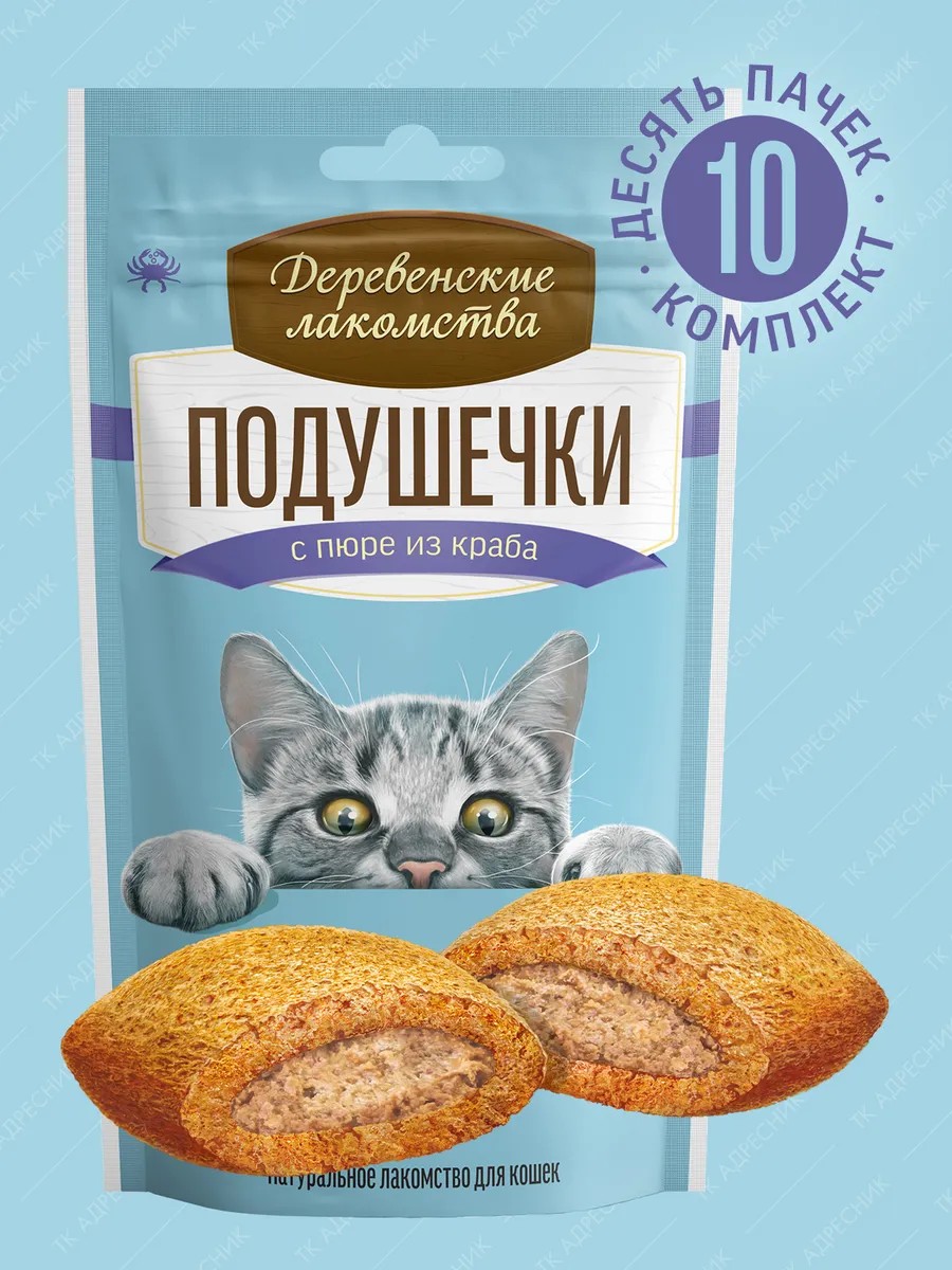 Деревенские лакомства Подушечки для кошек с пюре из краба 30г*10шт