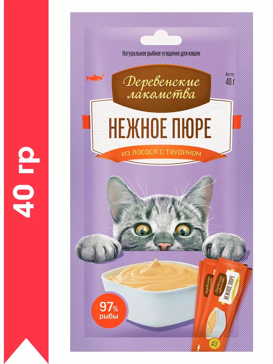 Деревенские лакомства Лакомства для кошек нежное пюре из лосося с таурином 40 гр