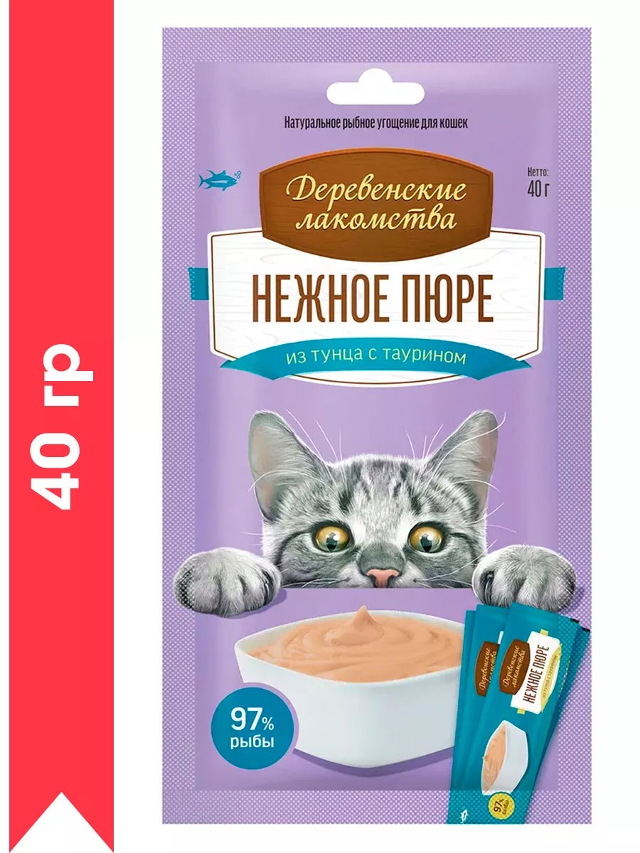 Деревенские лакомства Лакомства для кошек нежное пюре из тунца с таурином 40 гр