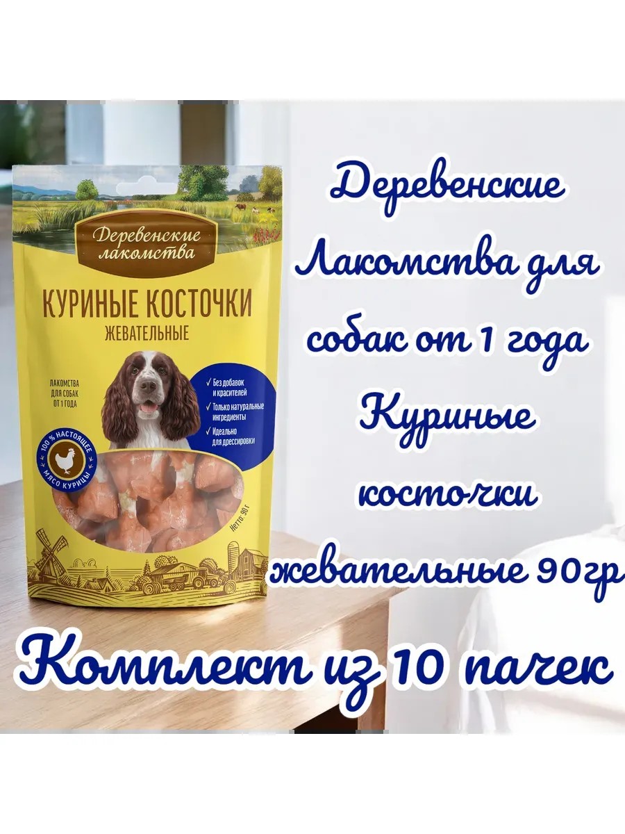Деревенские лакомства Куриные косточки жевательные для собак 90 г, 10 пачек