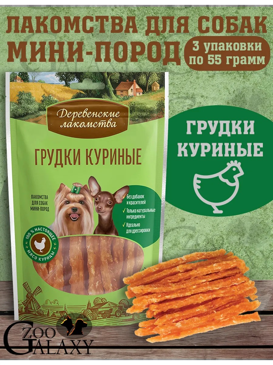 Деревенские лакомства Грудки куриные для мини-пород 3х55 г
