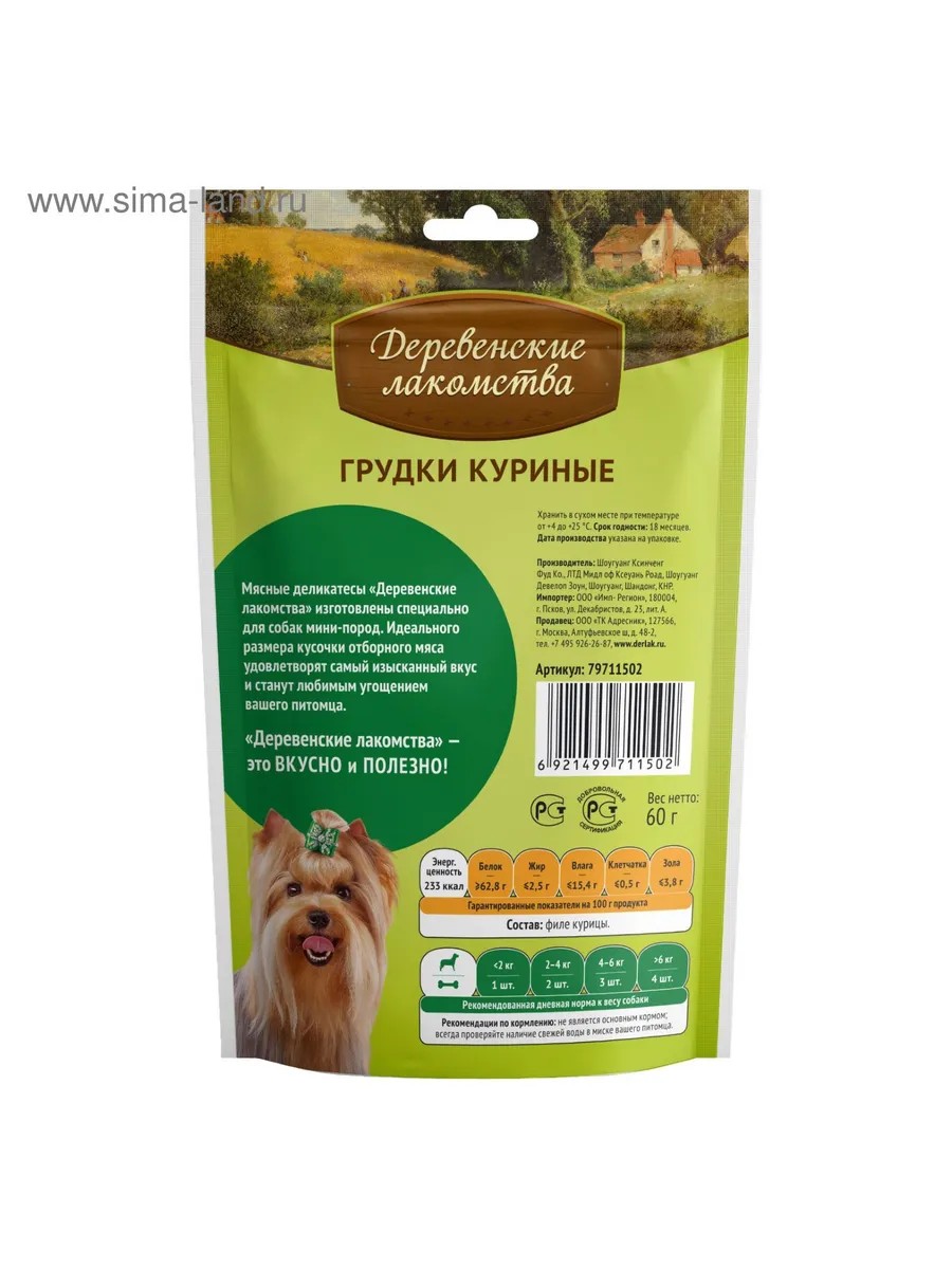 Деревенские лакомства Грудки куриные "Деревенские лакомства" для собак мини-пород
