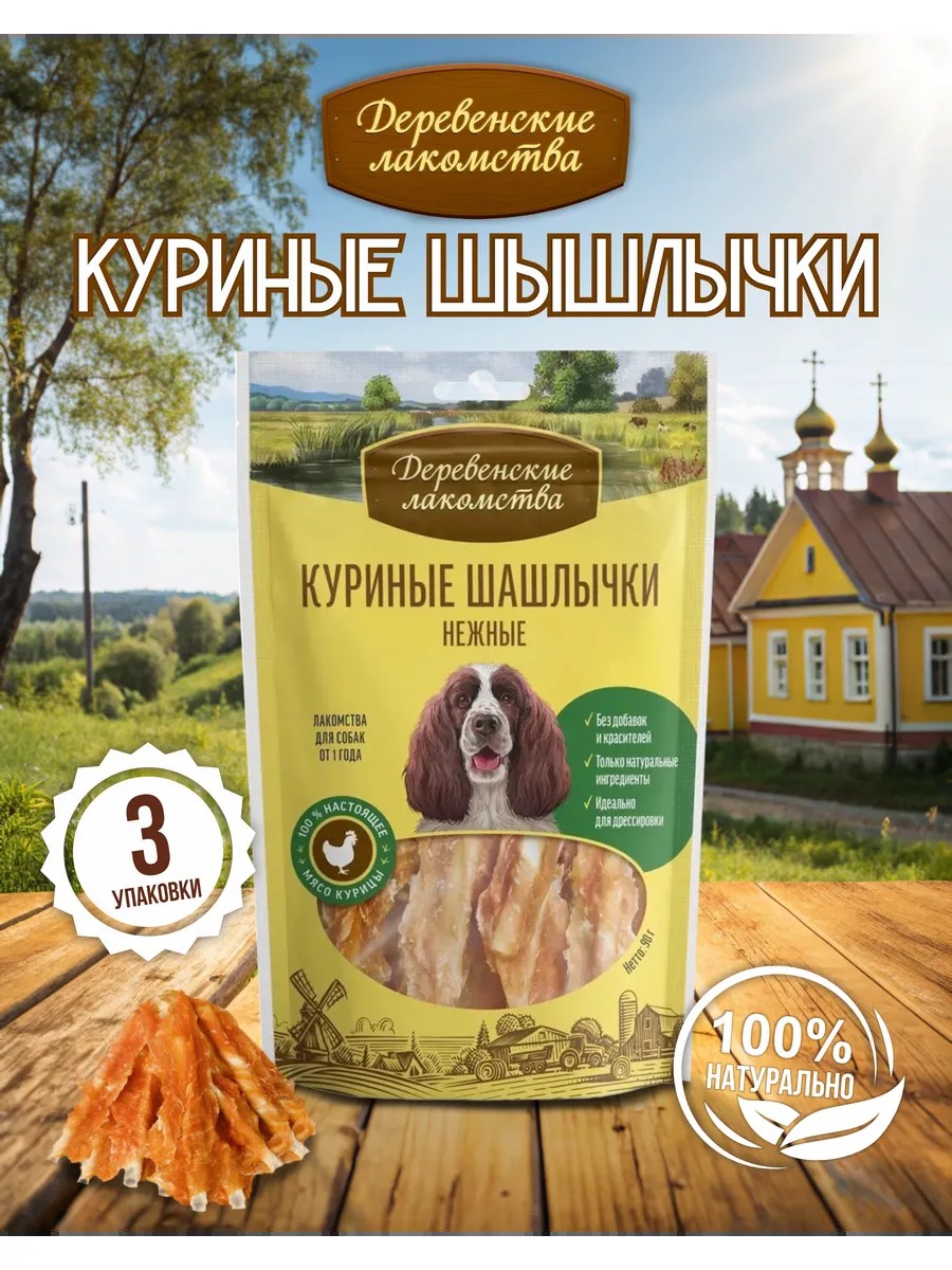 Деревенские лакомства Куриные Шашлычки нежные для взрослых собак 90г 3 шт