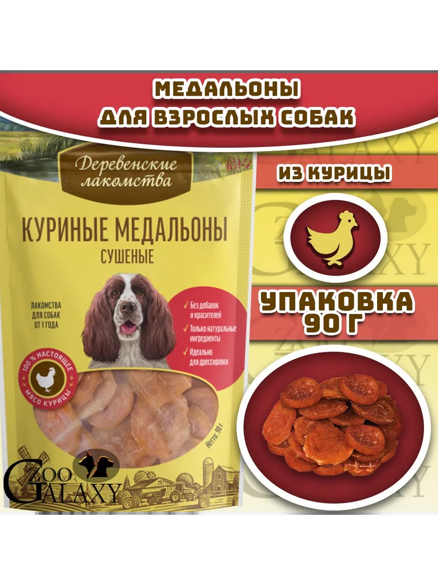Деревенские лакомства Куриные медальоны сушеные 100 % мяса для собак 90г