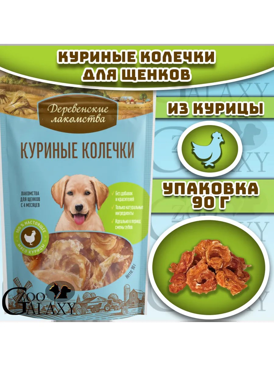 Деревенские лакомства Куриные колечки 100 % мяса для щенков 90г