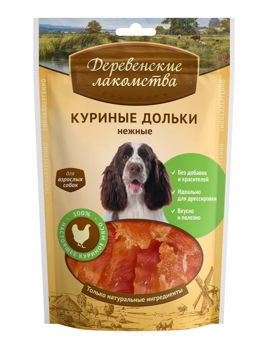 Эти нежные, сочные дольки из куриного мяса высшей категории станут любимым лакомством вашей собаки. Лакомство для взрослых собак средних и крупных пород.