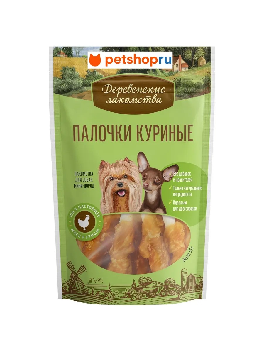 Деревенские лакомства Куриные палочки для собак, 55 гр