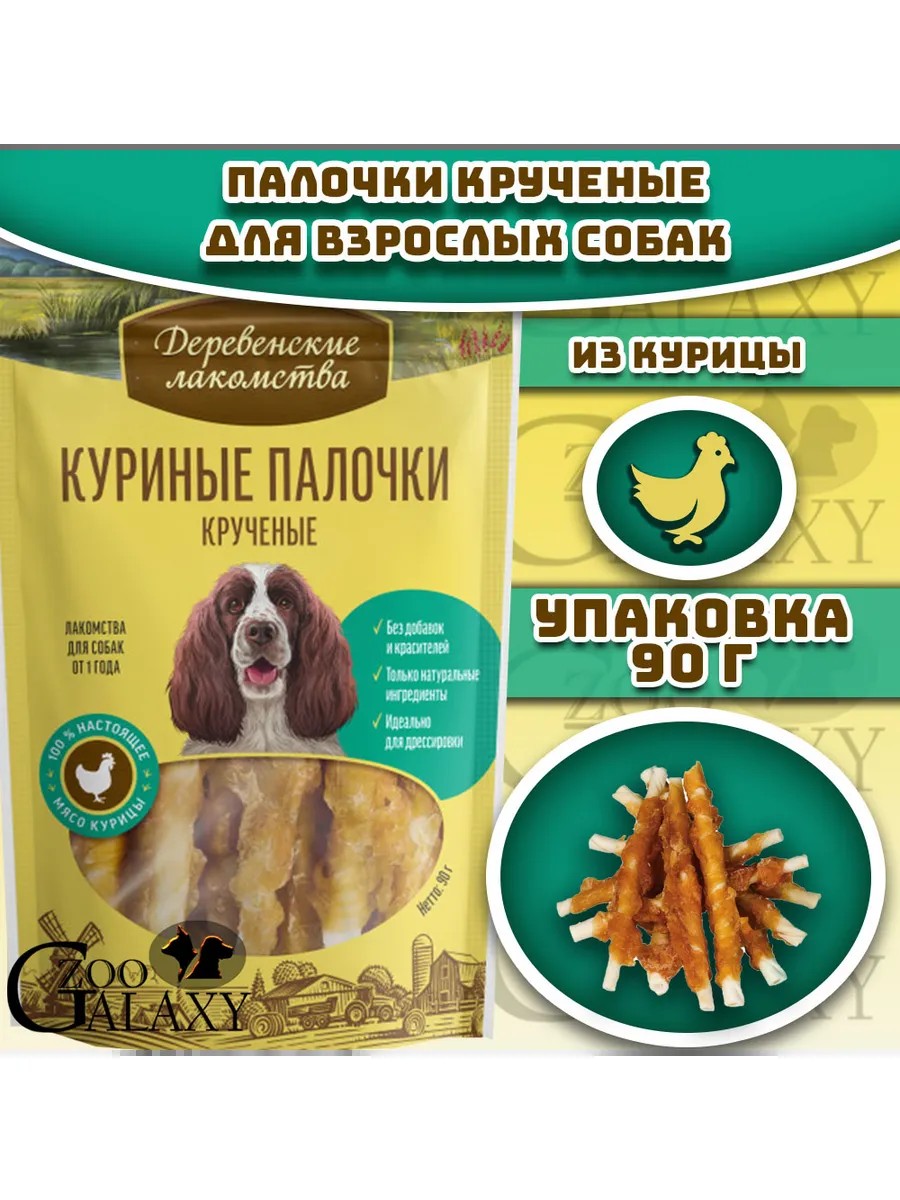 Деревенские лакомства Куриные палочки крученые 100 % Мяса для собак 90г