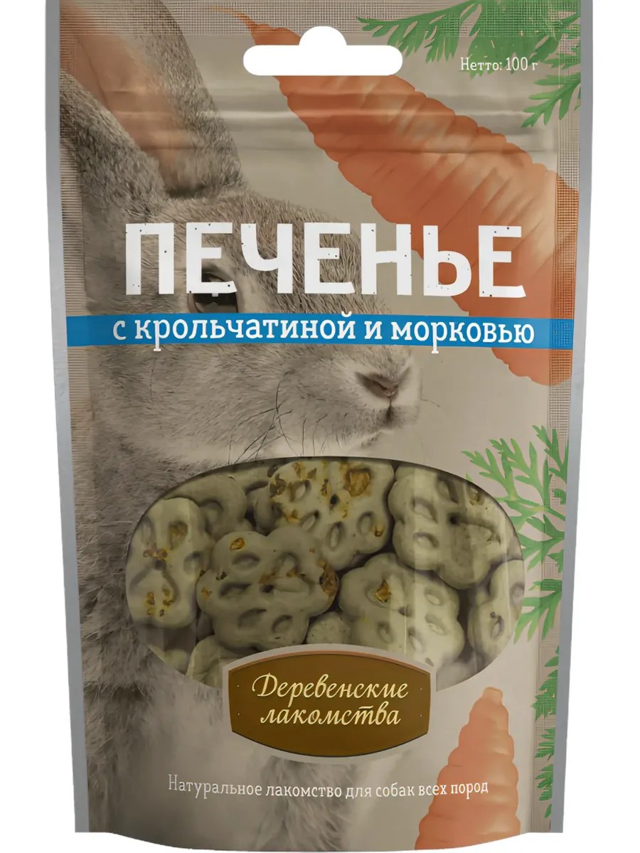Деревенские лакомства Печенье с Крольчатиной и Морковью для Собак 100г 1шт