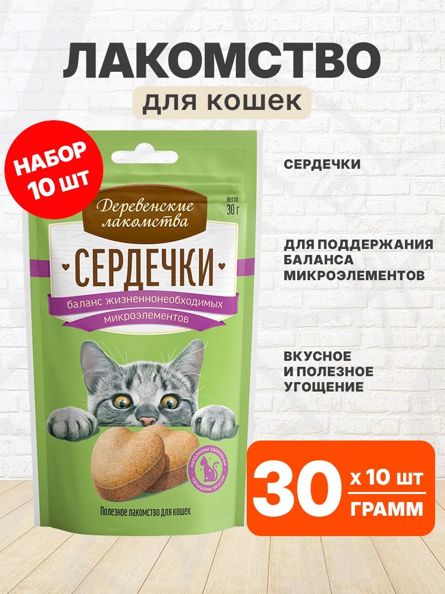 Деревенские лакомства Лакомство сердечки для баланса микроэлементов кошек 30г 10шт