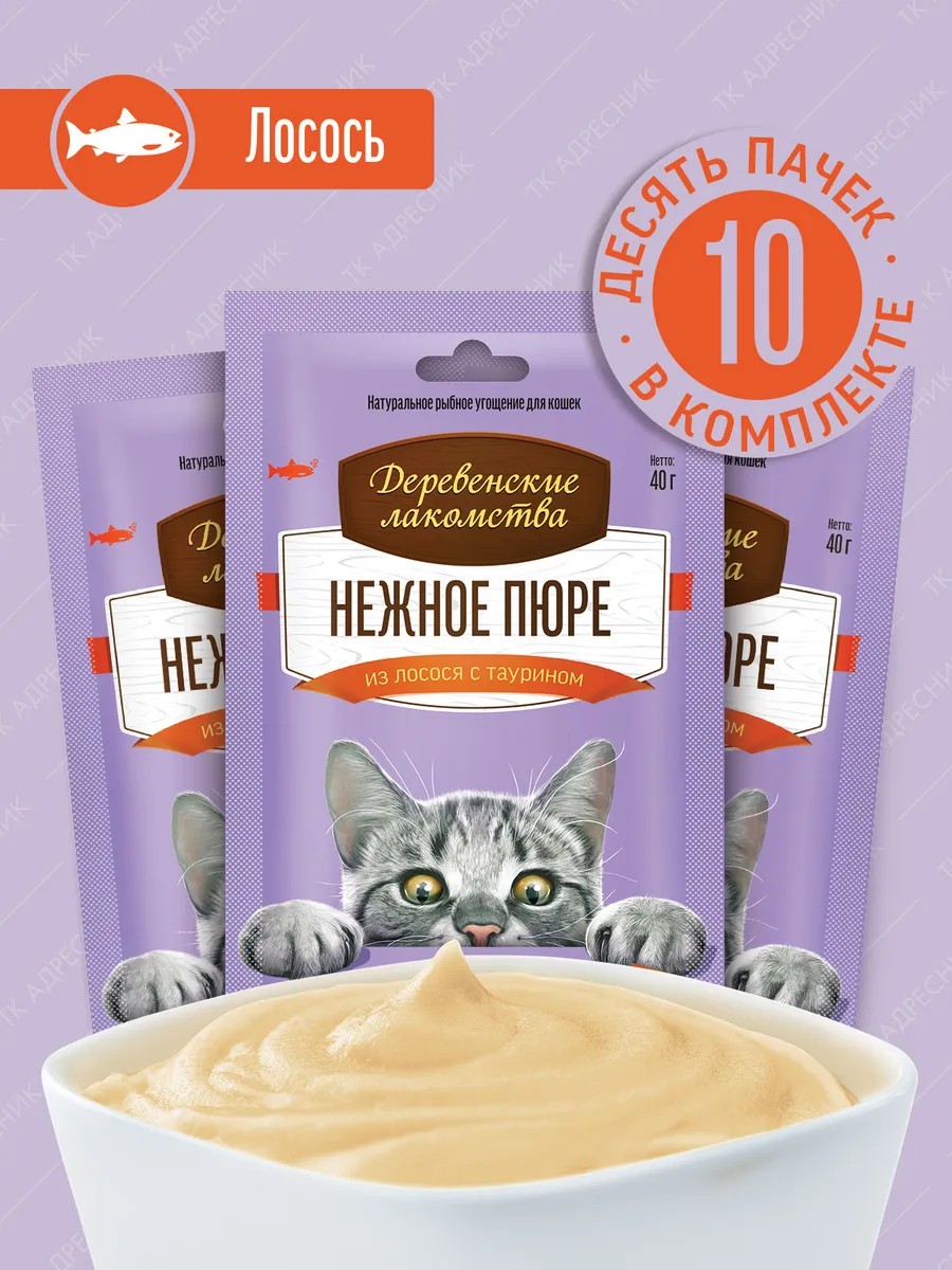 | Комплектация | Нежное пюре из лосося для кошек, 40 гр.*10 штук |