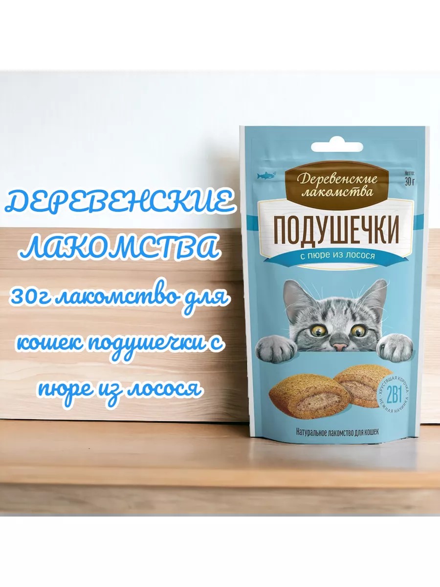 Деревенские лакомства Лакомство для кошек подушечки с пюре из лосося 30 г