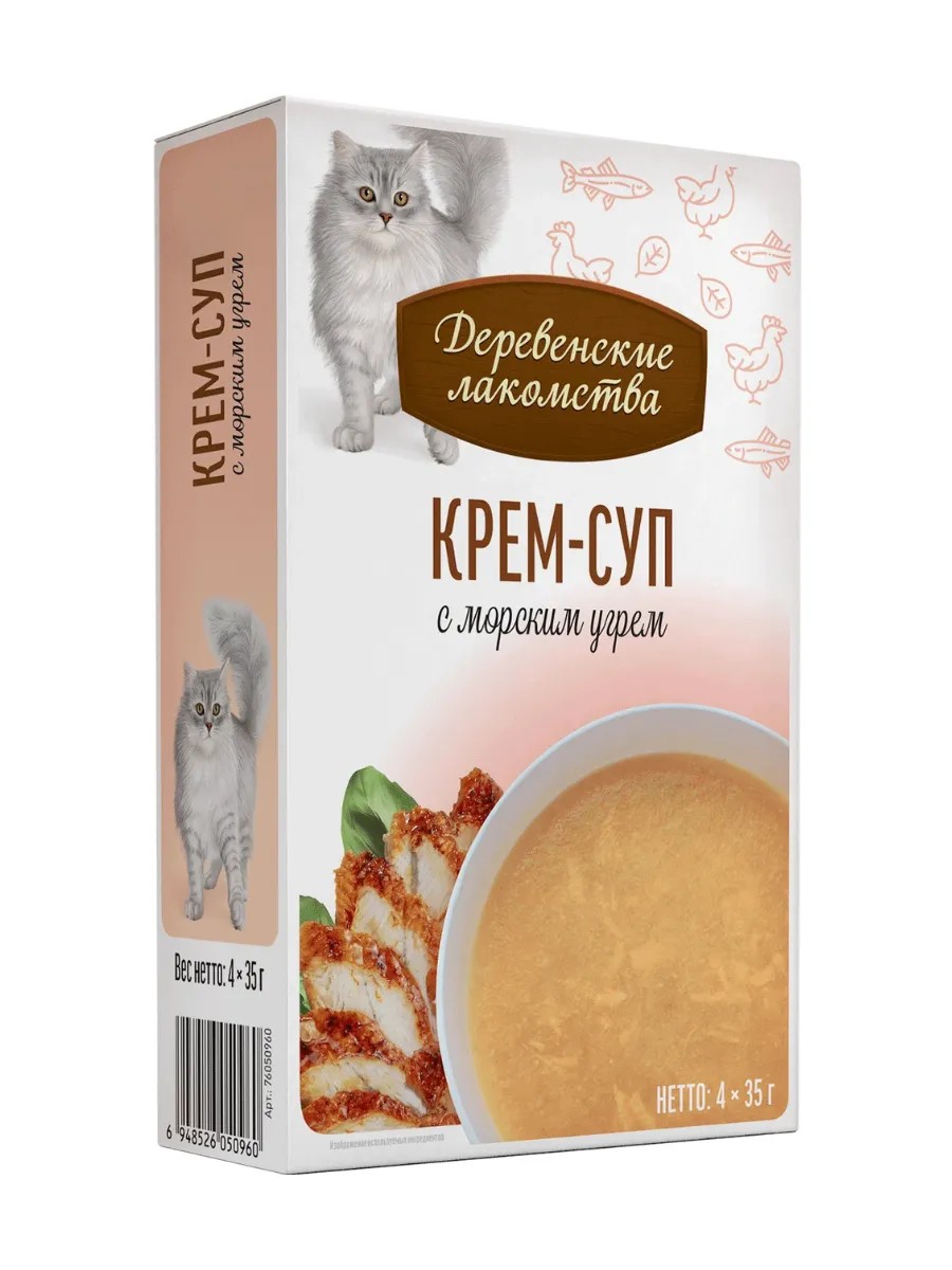 Деревенские лакомства Крем-суп для кошек с морским угрём 4шт х35 г