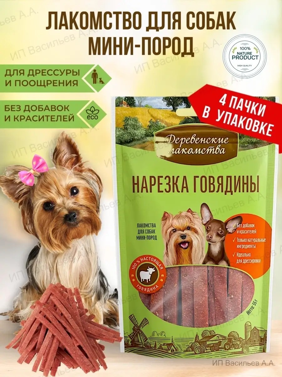 Деревенские лакомства Лакомства для собак мелких пород Нарезка Говядины 4 шт