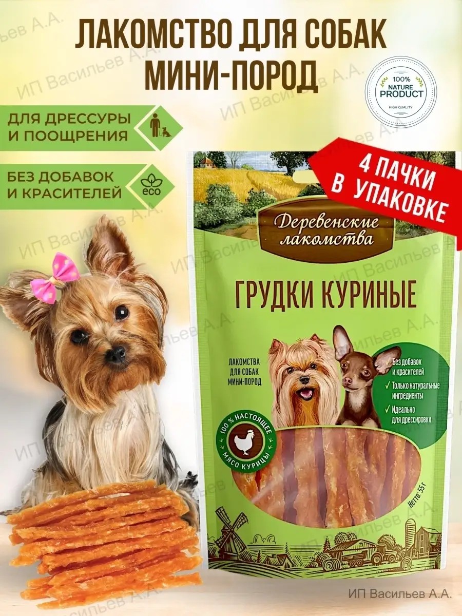 Деревенские лакомства Лакомства для собак мелких пород Грудки куриные 4 шт