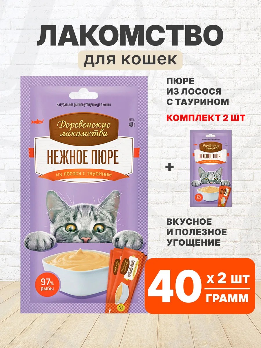 Деревенские лакомства Лакомство нежное пюре из лосося для кошек 2 шт