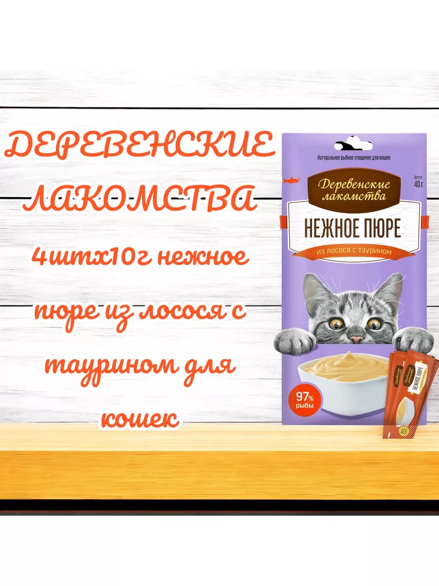 Деревенские лакомства Лакомство нежное пюре из лосося для кошек 4 шт х 10 г