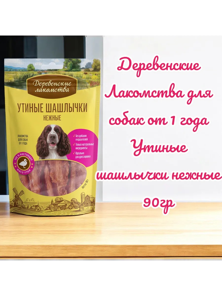 Деревенские лакомства Лакомство Утиные шашлычки нежные для собак от 1 года, 90 г