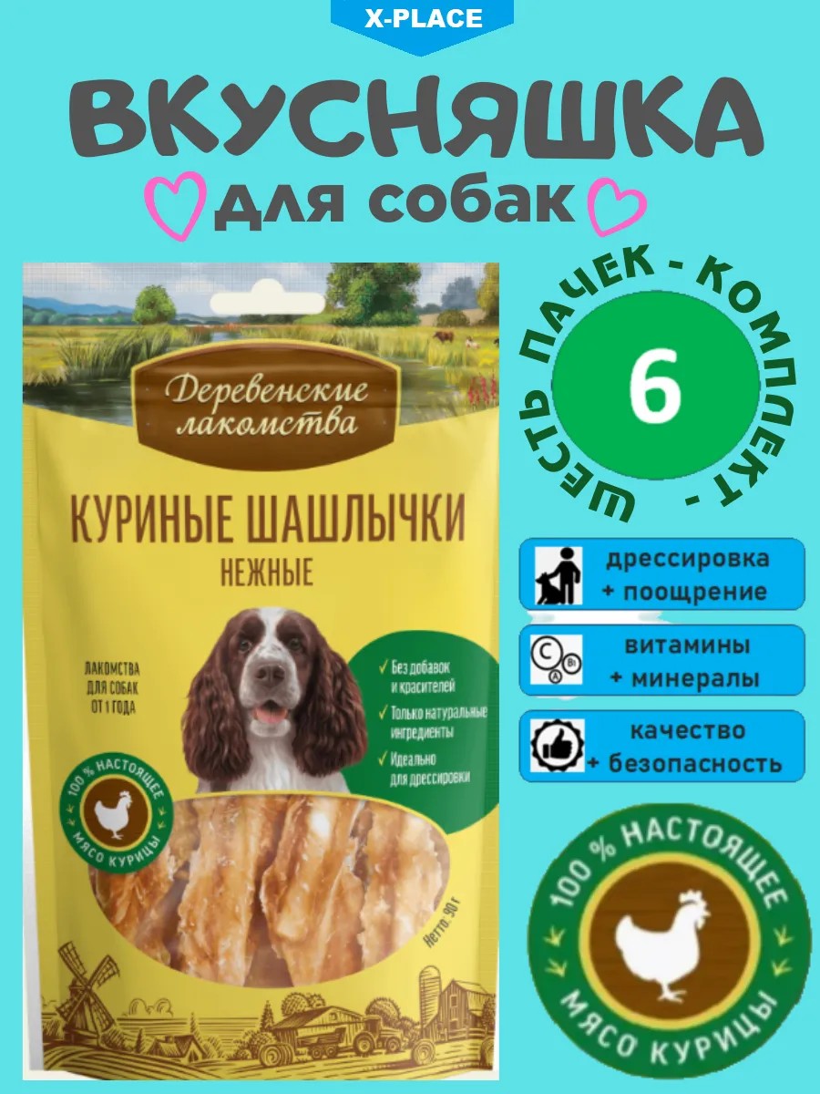 Деревенские лакомства Лакомство для взрослых собак Куриные шашлычки нежные 6 шт