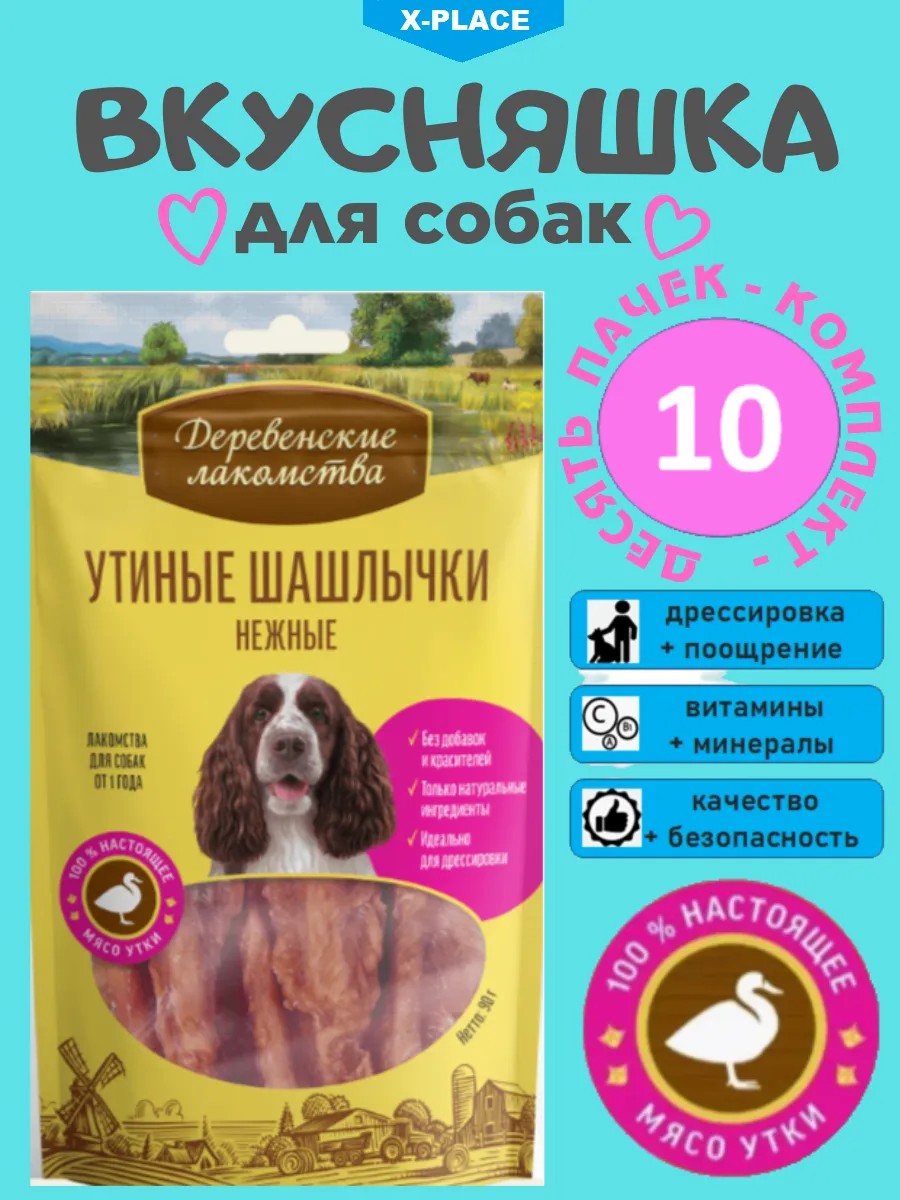 Удивите своего любимого питомца вкусняшкой "Утиные шашлычки нежные" Деревенские лакомства. В одной упаковке сразу 10 шт по 90 г. Это полезные лакомства, обогащенные витаминами и менералами для собак мелких, средних и крупных пород. Лакомства идеальны для разных целей: дрессировки, чистки зубов или как просто угощение для вашего питомца. Они имеют универсальный размер, что делает их идеальными для разного размера питомцев.