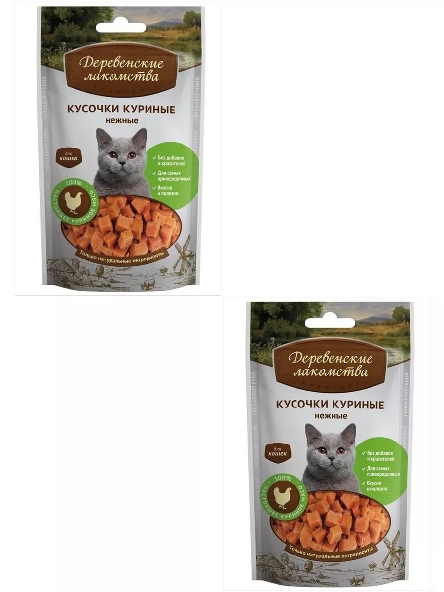 Деревенские лакомства Кусочки куриные нежные для кошек 45 г 2 шт