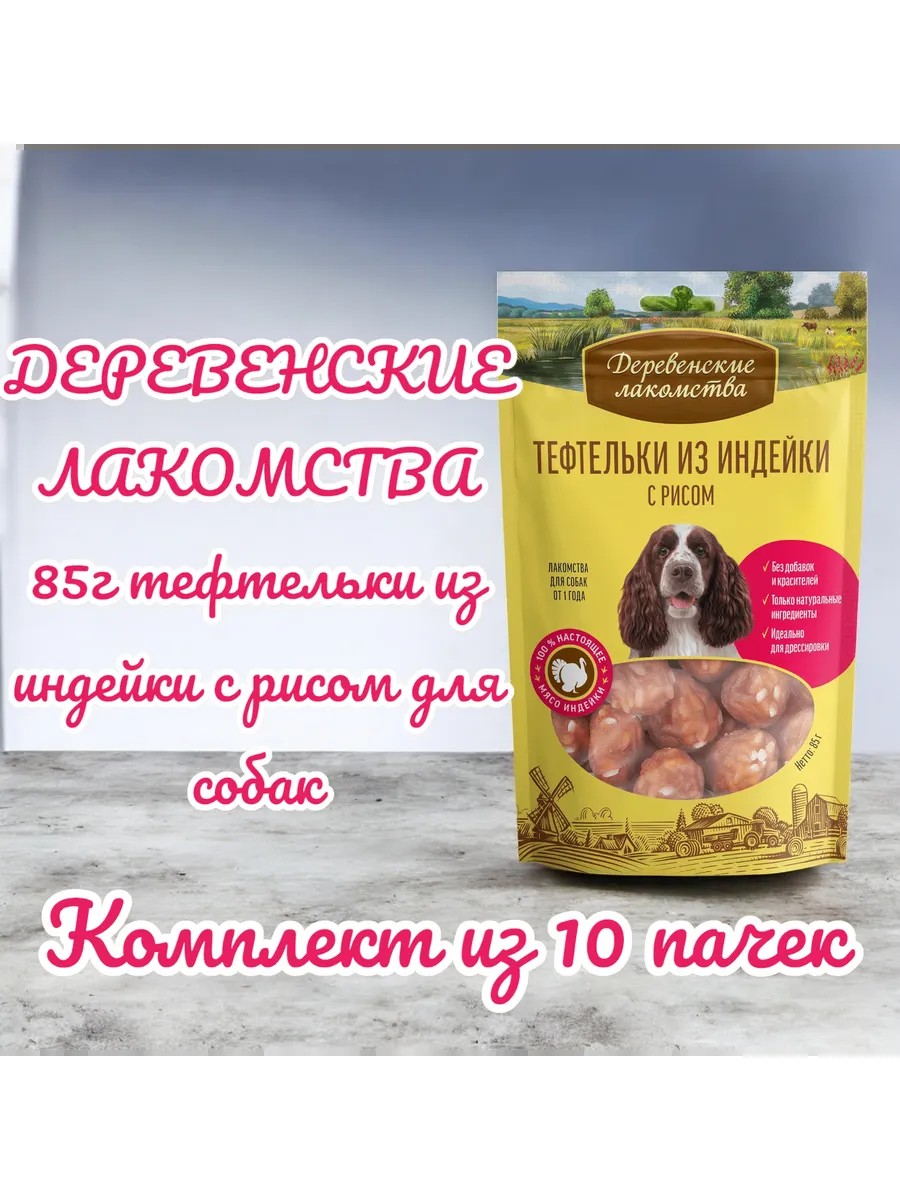 Деревенские лакомства Тефтельки из индейки с рисом для собак 85 г, 10 пачек