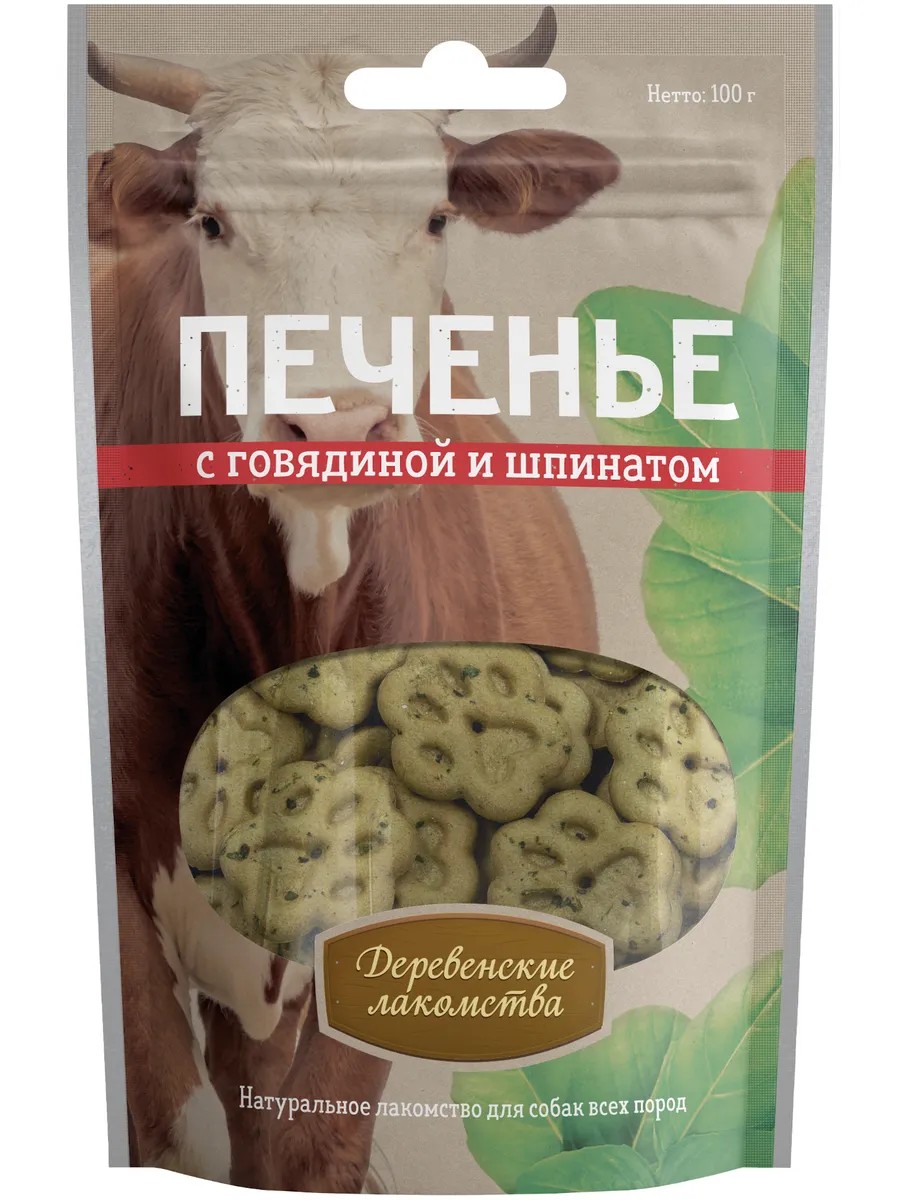 Деревенские лакомства Печенье для собак с говядиной и шпинатом 100г
