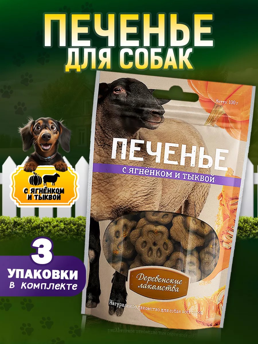 Деревенские лакомства Лакомства для собак Печенье с ягненком и тыквой, 3 уп
