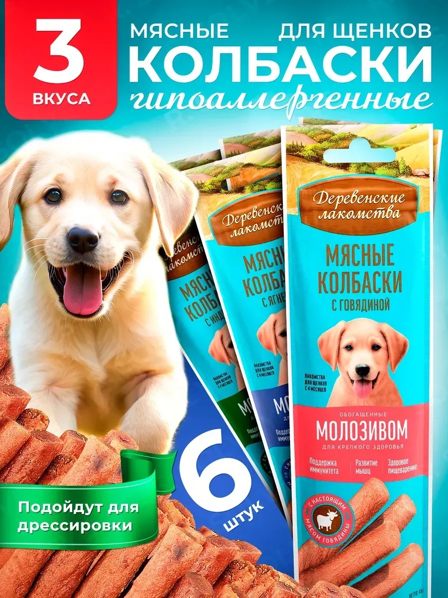 Колбаски для собак и щенков с молозивом Деревенские лакомства представляют собой отличный выбор для вашего питомца. Натуральное собачье лакомство идеально подходит для собак мелких, средних и крупных пород. Вкусняшки необходимы для дрессуры и поощрения. Вкусняшка порадуем как щенят, так и взрослых привередливых собак всех размеров. В наборе представлены 3 вкуса индейка, говядина, ягненок, что разнообразит повседневный рацион любимца. Иготовлены из натурального мяса и гипоаллергенны. Выбор этих лакомств для вашего питомца – отличный способ поддержать его здоровье и сделать его счастливым.
