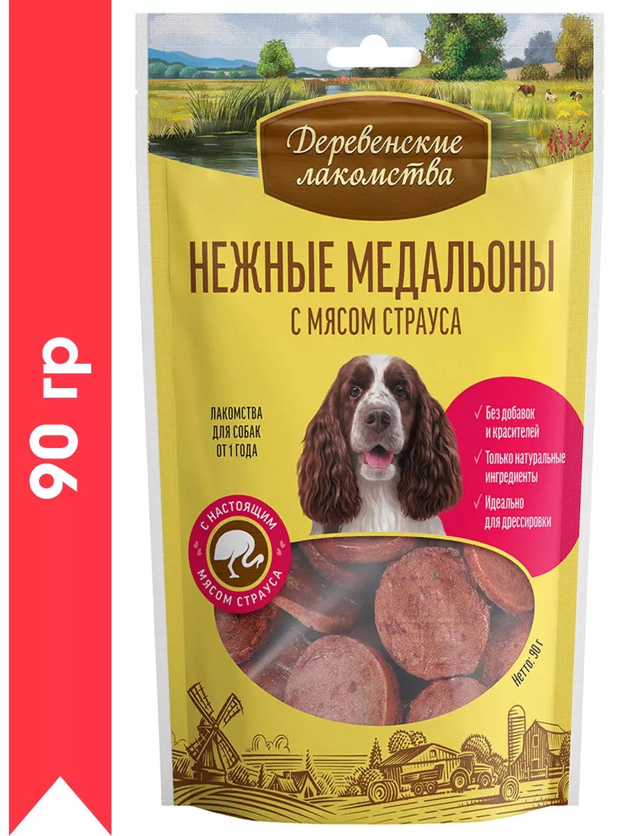 Деревенские лакомства Лакомства для собак нежные медальоны с мясом страуса 90 гр