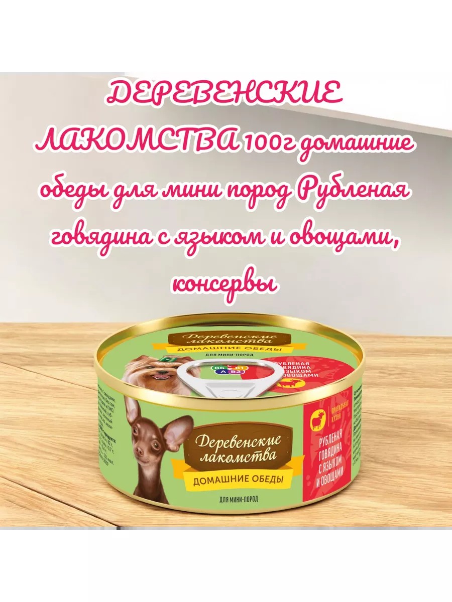 Деревенские лакомства Корм для собак Рубленая говядина, язык, овощи 100г